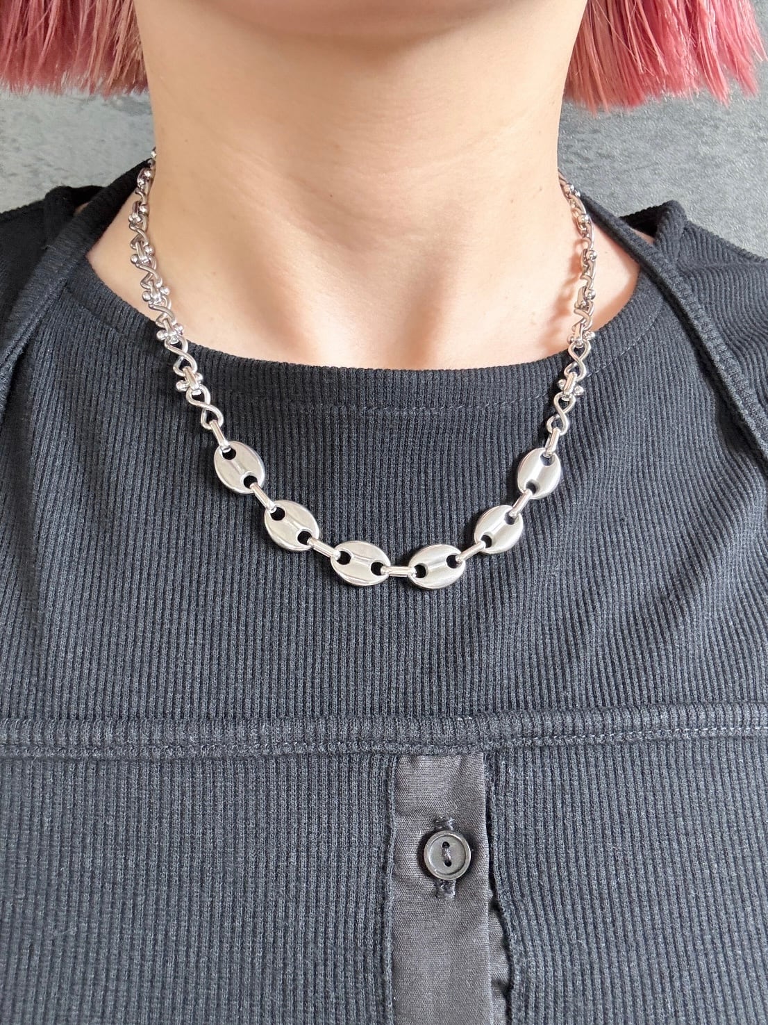 留め具がカニカンなので好きなところに引っ掛けて長さを調整が可能です