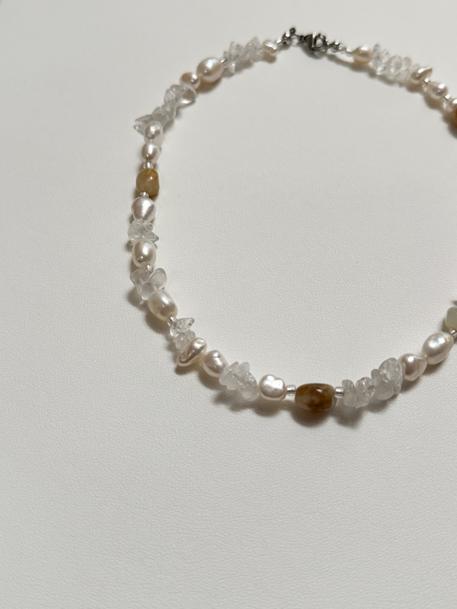 ◎フラワーアマゾナイト、クリスタルクォーツ、淡水パール