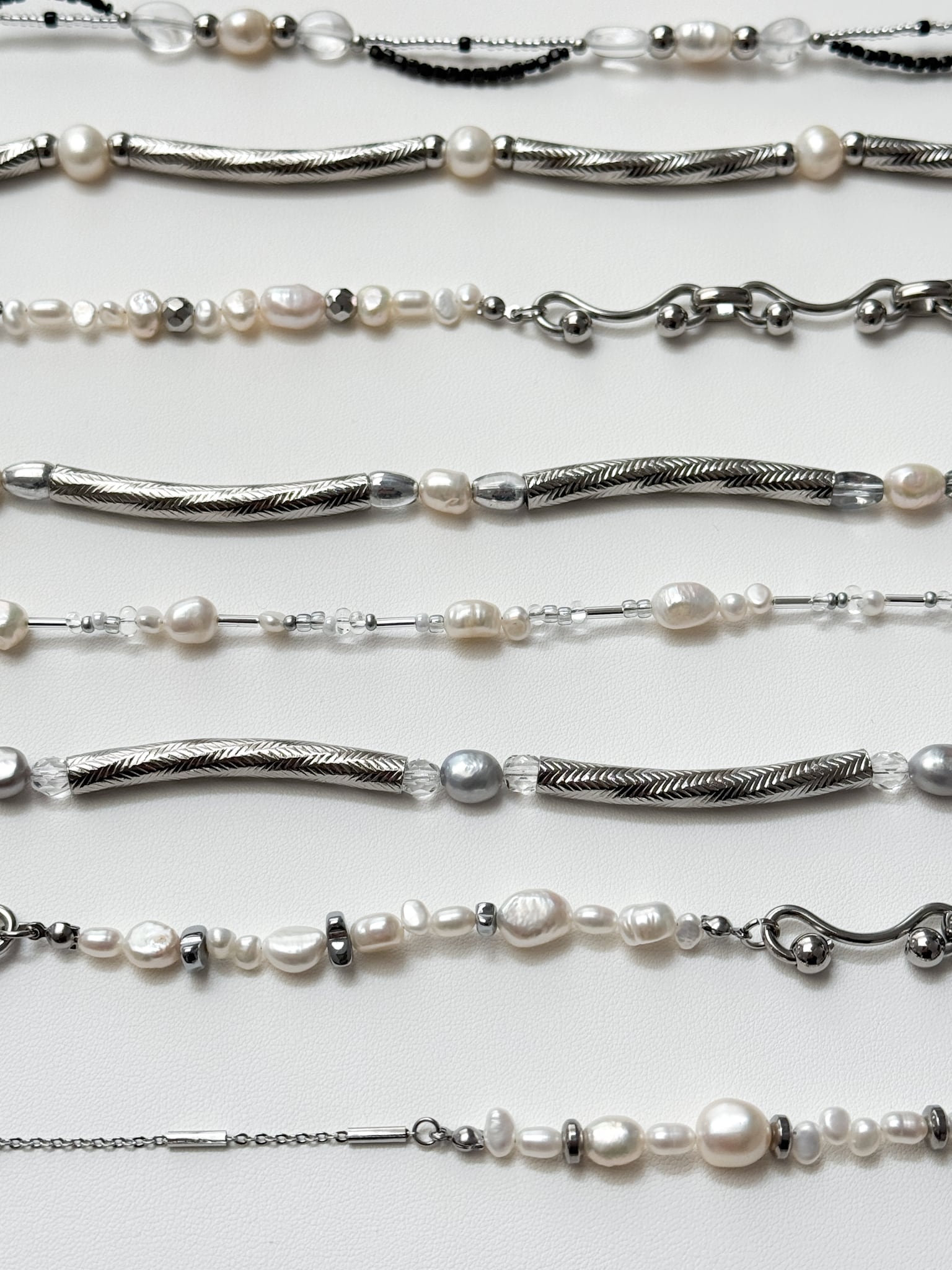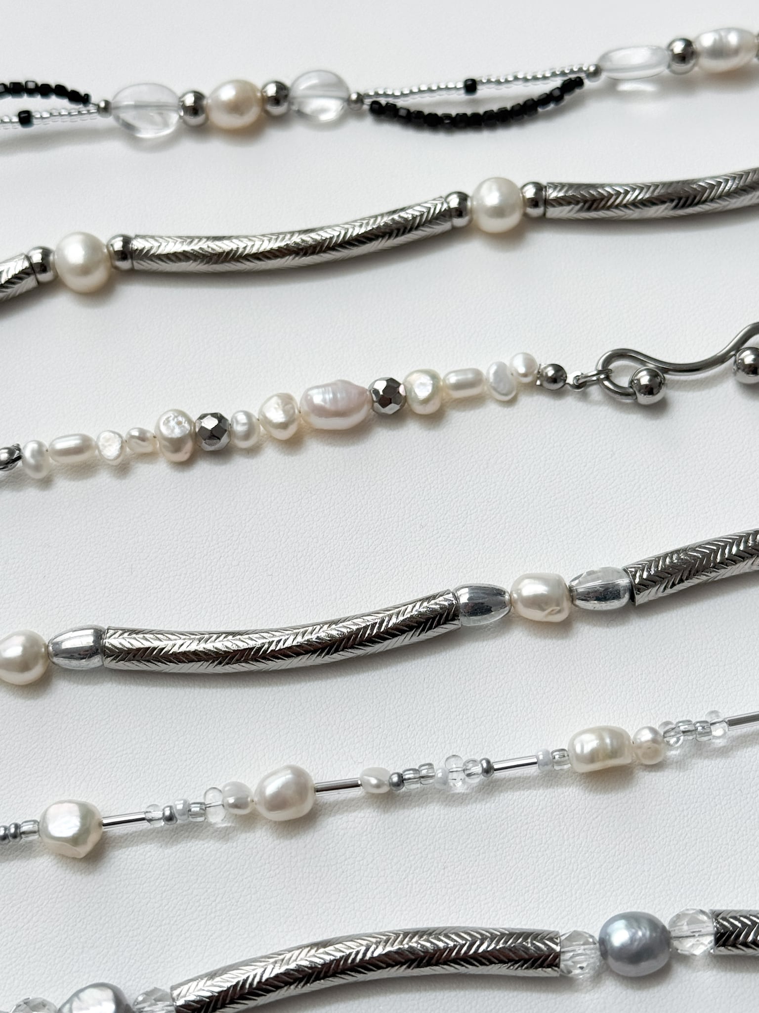 ◎ステンレス304チューブ、淡水パール、ガラスビーズ、金具…サージカルステンレス