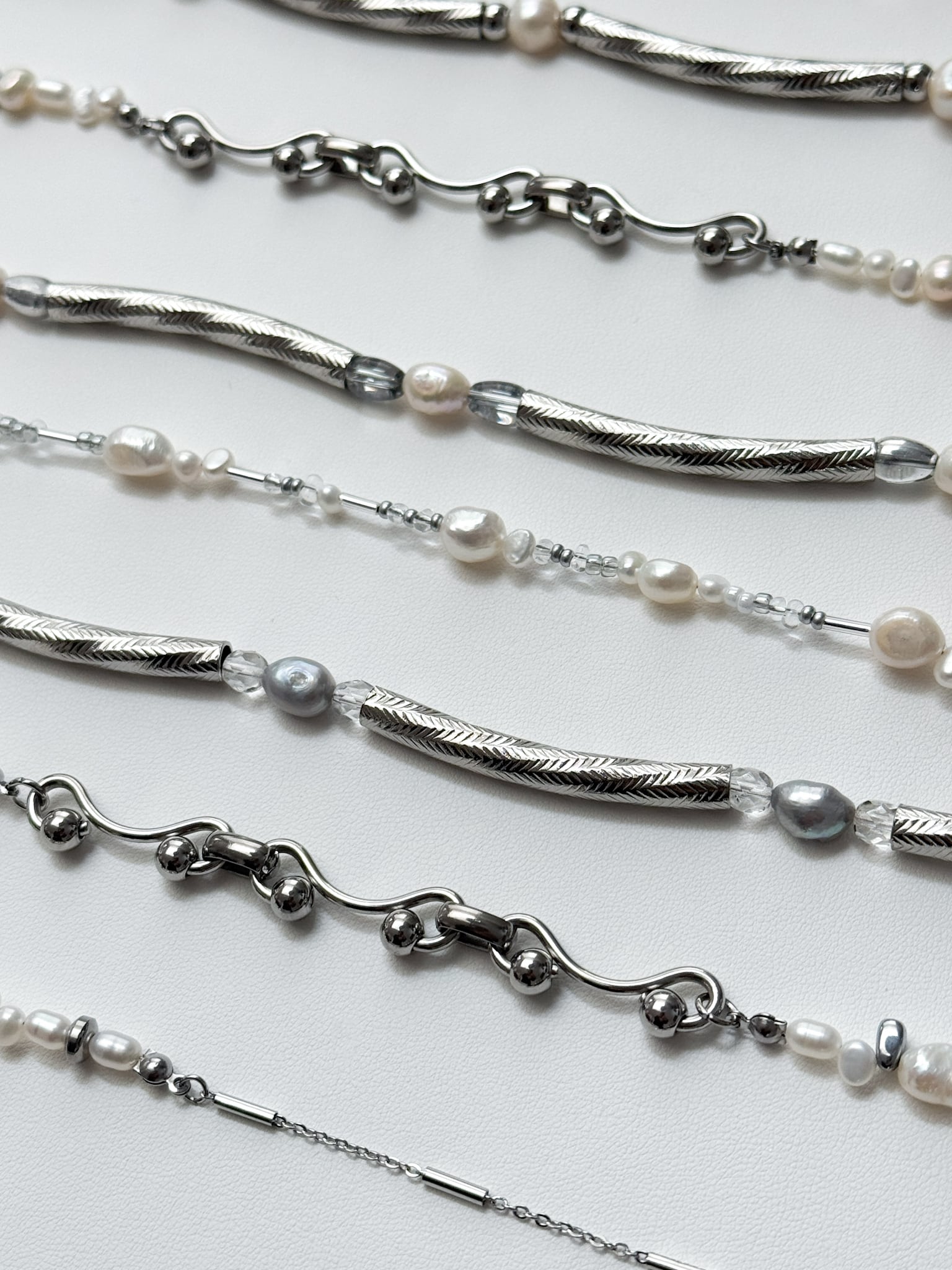 ◎ステンレス304チューブ、淡水パール、ガラスビーズ、金具…サージカルステンレス